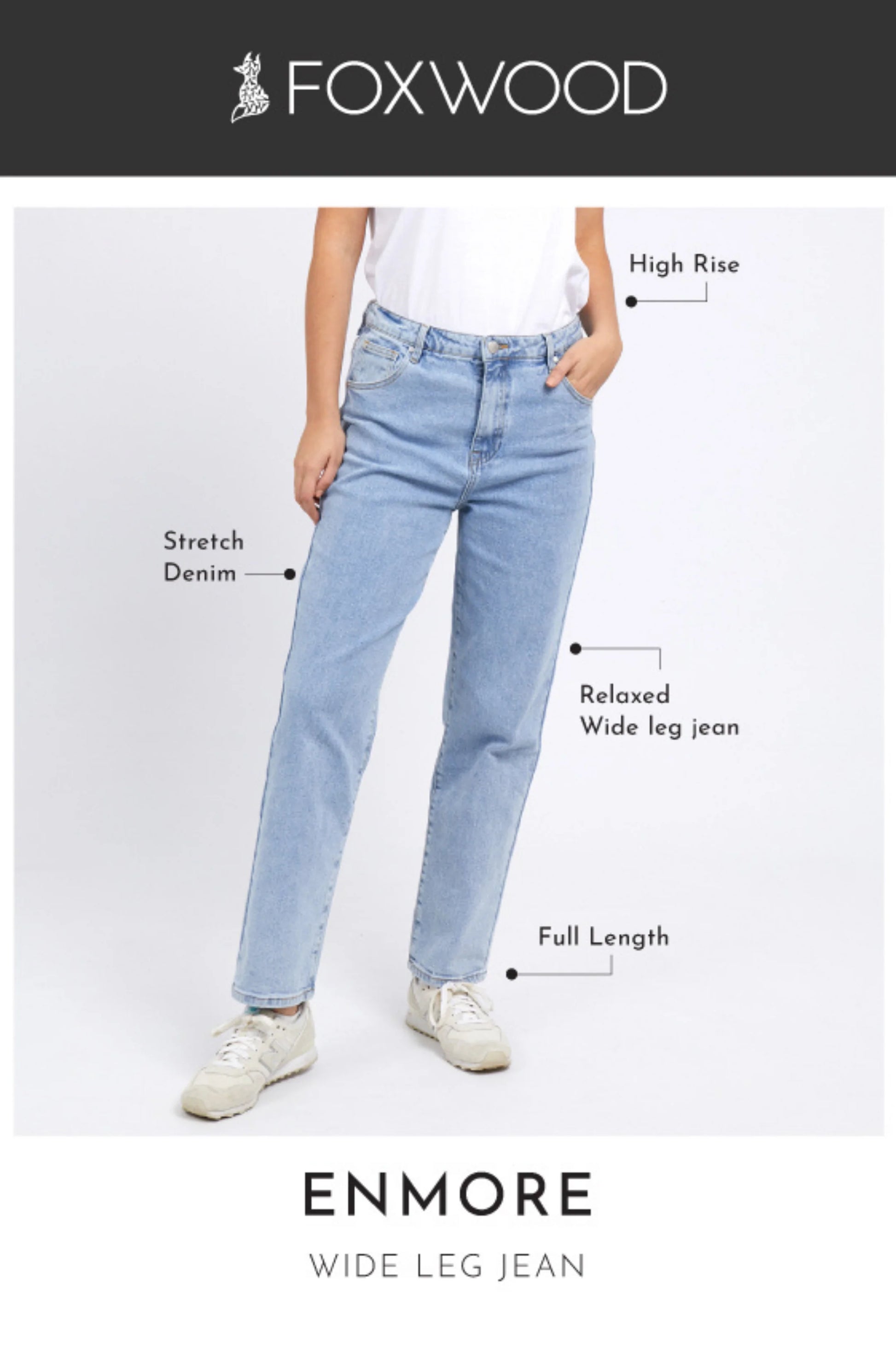 Meet the Foxwood Enmore Jean. These must-have jeans feature a classic 5 pocket design with zip front closure. They're constructed in a mid-weight 13oz stretch Denim and designed to stretch in all the right places. With a relaxed wide leg and high rise these light-washed blue jeans will become your favourites this season.