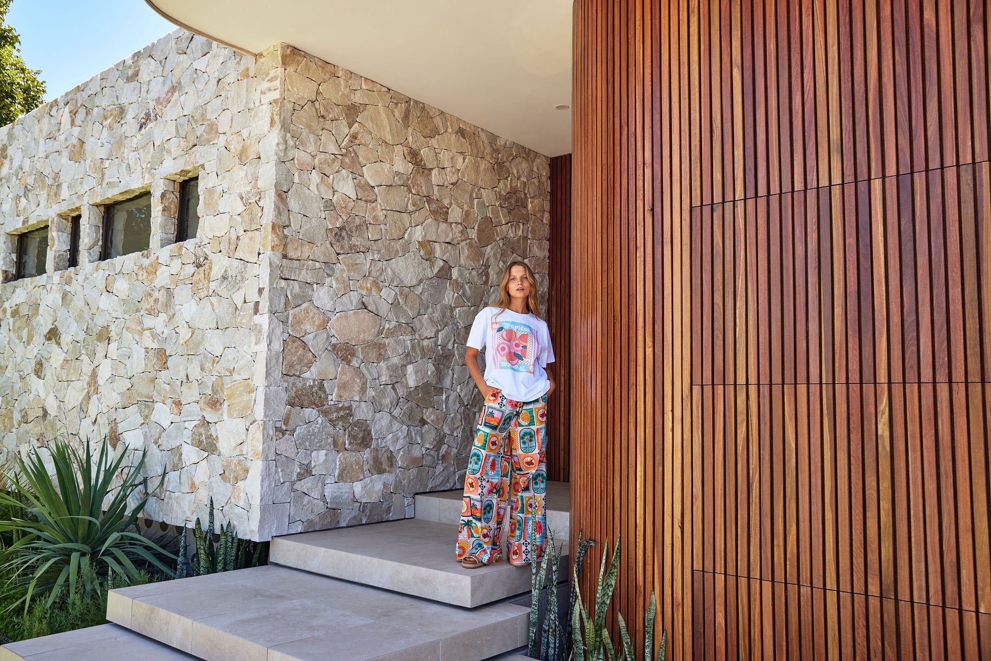 A fresh take on resort wear, the Vermont Pant in our playful Frutas Frescas print is all about effortless ease. Featuring a flattering wide-leg silhouette, soft elastic waistband, and lightweight feel, these pants are made for sunshine days. Style them with the matching shirt or a relaxed white tee for a cool, coordinated look.